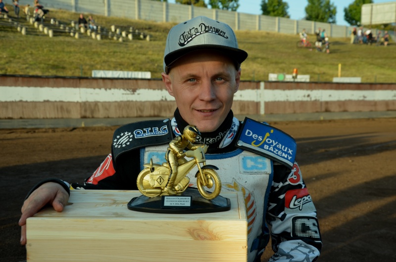 „Dnes to byl mentální očistec,“ konstatoval Matěj Kůs. „Já i Milánek jsme odvedli dobrou práci. Začal bych tím, že jsem nespadl ani minutu. Byl jsem hrozně namotivovanej‘, abych tu bednu získal zpátky, celou noc jsem závodil. Další den jsem byl správně unavený, možná díky tomu jsem nevnímal okolí a soustředil se jen na sebe. Myslím, že to byla správná únava, která mně pomohla. Záleželo mně na tý bedně, kromě roku 2013, kdy jsem byl zraněný po pádu s Miedzinskim na Markétě, jsem z bedny od roku 2008 neslez‘ a chtěl jsem, aby to tak zůstalo. Domácí mistrák se nevyvíjel letos, jak bych sám chtěl, po technických problémech z Markéty a nedojetý poslední jízdě jsem doháněl velkou ztrátu a věděl jsem o tom. Další kolo bylo další den v Pardubicích, tam patří velký dík Láďovi Dvořákovi, který makal noc a den, abych měl, na čem vůbec jet. V půl čtvrtý odpoledne jsem dodělal motory, zasadili jsme asi během patnácti minut a rvali Vito po Hradecký dálnici asi dvě kila. Stihli jsme ještě trénink a bylo z toho dvanáct bodů a třetí místo. Vyhlídky ale na celkový pořadí nebyly růžový. Milda, Pepa, Eva byli bodově daleko. Měli jsme stejně s Hynkem a Tomášem, všech pět letos jelo dobře a měli dobrý výsledky. Věděl jsem, že to nebude lehký a poslední závod není prostor na žádný chyby. Podle toho jsem taky jel, nejel jsem v Plzni špatně, ale byl jsem přemotivovanej‘. I když jsem za sebou měl čtyři vítězství, neuvolnil jsem se na té motorce celý den a jel v křeči. Ten tlak mě svazoval. Edu jsem musel předjíždět kolem prken, v jízdě s Tomášem a Hynkem jsem ty nafukovačky v posledním kole u depa trefil. Po té jízdě jsem odešel do auta a věděl, jestli to chci dnes dotáhnout do konce, musím srovnat hlavu. Chvíli jsem zavřel oči a prodejchal se. Poslední, dvacátá jízdě mě čekala s Mildou, koukl jsem se do programu a nikdo kromě mě tam už neohrožoval. Tak jsme k tomu tak přistoupili, změnil jsem nastavení v celý motorce a vyzkoušel to s tím, že buď to bude fungovat nebo vím, co nefunguje a jít do rozjezdu druhou stranou. Upřímně, ani jsem se na Mildu nesoustředil, nemám na něho stejně jako zbytek republiky v současný době a porazit ho v ten den by bylo o velké náhodě. Porazil mě a já do rozjezdu měl díky tomu čistou hlavu, jak motorku na rozjezd nastavit. Už, jak jsem si zkusil start, věděl jsem, že je to super. Páska šla nahoru a já měl lepší start, než jsem sám chtěl. Původní teorie byla jet hned do toho materiálu, aby mě Eda neobjel. Hned od startu jsem ale měl takový náskok, že jsem měl strach, aby mě nepodjel, když se budu hnát ven. Teď už to můžu říct, do nájezdu jsem na něho počkal, až mě dojede, vyvezl jsem ho ven a okamžitě to zlomil zpět na lajnu a udělal jsem si dlouho rovinu. Další čtyři kola jsem upaloval, jak to šlo, a ani se za sebe zbytečně neotáčel, nechtěl jsem udělat hloupou chybu. Teprve po projetí cílem jsem si uvědomil, že jsem celý čtyři kola neubral. Tahle jízda byla dneska první, kdy jsem si na motorce pořádně ulevil a jelo se mi hladce a uvolněně. Když jsem se ohlídl ve druhým kole, jak daleko Eda je a v dalším kole to pak zabalil, nechtěl jsem chybovat a držel si rytmus dál. Eda si zaslouží pogratulovat, protože jel dobrý závody a bojoval. Poradil si s tou těžkou dráhou líp, než jsem si myslel. Moje pocity po závodech jsou velká radost z výsledku, ale hlavně z toho, že jsem ukázal mentální sílu, a zároveň vědomí, že přestup do Newcastlu splnil účel.“