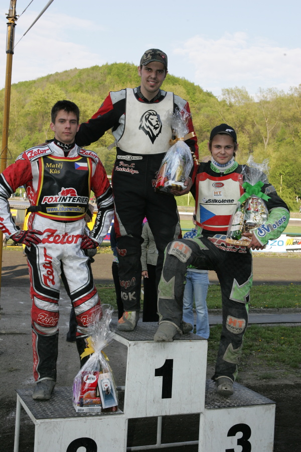 Když Luboš Tomíček začínal závodit, zdál se mu přínos jeho dědečka s jeho pěti tituly mistra republiky příliš malý. Nicméně sám záhy poznal, jak náročné je o mistrovskou korunu bojovat, protože ve finále českého individuálního mistrovství se objevil už v šestnácti letech. Teprve včera se mu ovšem podařilo stanout na pódiu, když vyhrál úvodní podnik letošního třídílného finále. O jeden bod jej urputnou snahou připravil Matěj Kůs. Druhé místo obsadil Lukáš Dryml, který se svěřil, že svůj výkon nepokládal za optimální. Tři borci se střetli o bronz v rozjezdu, když jury neakceptovala původní gentlemanskou dohodu závodníků vyřešit status quo hodem mince. Aleš Dryml zastavil hned po vylétnutí pásky, nicméně Filip Šitera s Adrianem Rymelem naplnili jeho slova, že s nasazenou přilbou na hlavě nejde nezávodit beze zbytku. Po velkém boji protnul metu dříve plzeňský junior. Ve velké formě se letos poprvé předvedl obhájce titulu Martin Vaculík. O body přišel vinou vyloučení za zavinění pádu Jana Jaroše v rozjížďce s číslem třináct.