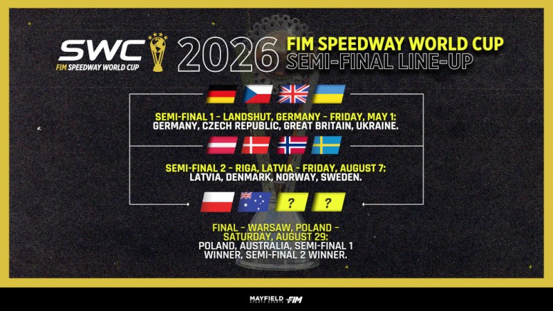 Každé dva roky se o světový titul ve družstvech bojuje ve formátu Speedway of Nations. A poté přichází na řadu světový pohár družstev. Jeho letošní ročník vyvrcholí ve Varšavě na konci srpna. Semifinále se konají v Landshutu a v Rize, vždy o den dříve než podniky Speedway Grand Prix. Nyní promotér ruku v ruce s plochodrážní komisí FIM zveřejnil rozlosování pro obě semifinále. Češi pojedou v Německu proti domácím, Britům a Ukrajincům.