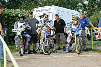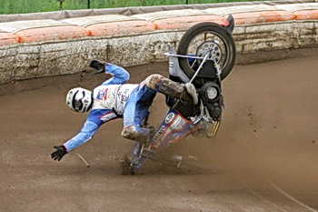 byl spokojenej‘, oni byli spokojený, ale ta dráha je motokrosová. Potřeboval bych se na tý motorce přilepit, abych nelítal. Jeli jsme tam s Honzou Hlačinou a on si splet‘ vejfuk a na druhý motorce nechal starej‘. Novej‘ nikdo neměl. Bylo to proti Lublinu, oni měli Barana, Barkera, Steada. Říkal jsem si, že dostanu na prdel, ale zmastil jsem je tam. Usiluju o to mít nějakej‘ klub. Moh‘ bych závodit za jeden prvoligovej‘, ale nevím, jestli na to budu mít. Polsko je Polsko, je to nářez. A nebo mít klub ve druhý lize. Teď to budu řešit a zavolám Aďovi. Základ je ale Anglie, na to Polsko se nemůžeš spoléhat.“