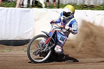 v Groningenu. Vždycky jsme trénovali, že jsem byl zničenej‘ už po tréninku, ale pořád jsme něco zkoušeli. V Groningenu jsem vyhrál tři rozjížďky a hned si věřil, že bych vyhrál i celou Grand Prix. Stačilo mě odjet už jenom jízdu a možná bych ten závod vyhrál. Dostal bych tři tisíce euro a bylo by to lepší. Jenže to zrušili, dostal jsem šest set a hned čtyři sta dal za cestu do Francie. Mrzely mě Mariánky. To vidím, jako kdyby to bylo dneska dopoledne. První jízdu jsem byl první, potom mě oprali. Když jedeš na motorce a ta začne zpomalovat a motor přitom vrčí, to tě naštve. Ale přišli jsme na to. V tom momentě si vezmeš druhou a najednou to vidíš. Zadní kolo jsem měl moc vpředu, guma se tím teplem zvětšila a drhla o rám motorky. Druhou jízdu jsem už na tý samý motorce vyhrál, jen jsem to kolo posunul o kousíček dozadu. Prostě se mi to v Mariánkách nepovedlo, motorka nebyla tak živá jako rok předtím. Ale soupeři už maj‘ ze mě respekt. Už vidíš, jak se choděj‘ koukat, co máš na motorce a musíš to schovávat. To dělám i já, chodím po depu a řeším, jak to maj‘ nastavený. Rám Stuha je přetáčivej‘, Jawa víc tahá za ruce. Když jsem viděl, že někdo sundal kus z rámu, udělal jsem to taky a povedlo se to. Doufám, že letos se to všechno zúročí. Abych řek‘ pravdu, po sezóně jsem se rozmejšlel, jestli to budu ve svejch‘ letech ještě dělat. Jestli nedělat plochou dráhu jen jako práci. Ale jedu dál, proto jsem šel do Sheffieldu. Teď bych konečně chtěl ukázat, že jsem dobrej‘ závodník jak v Anglii, tak u nás.“