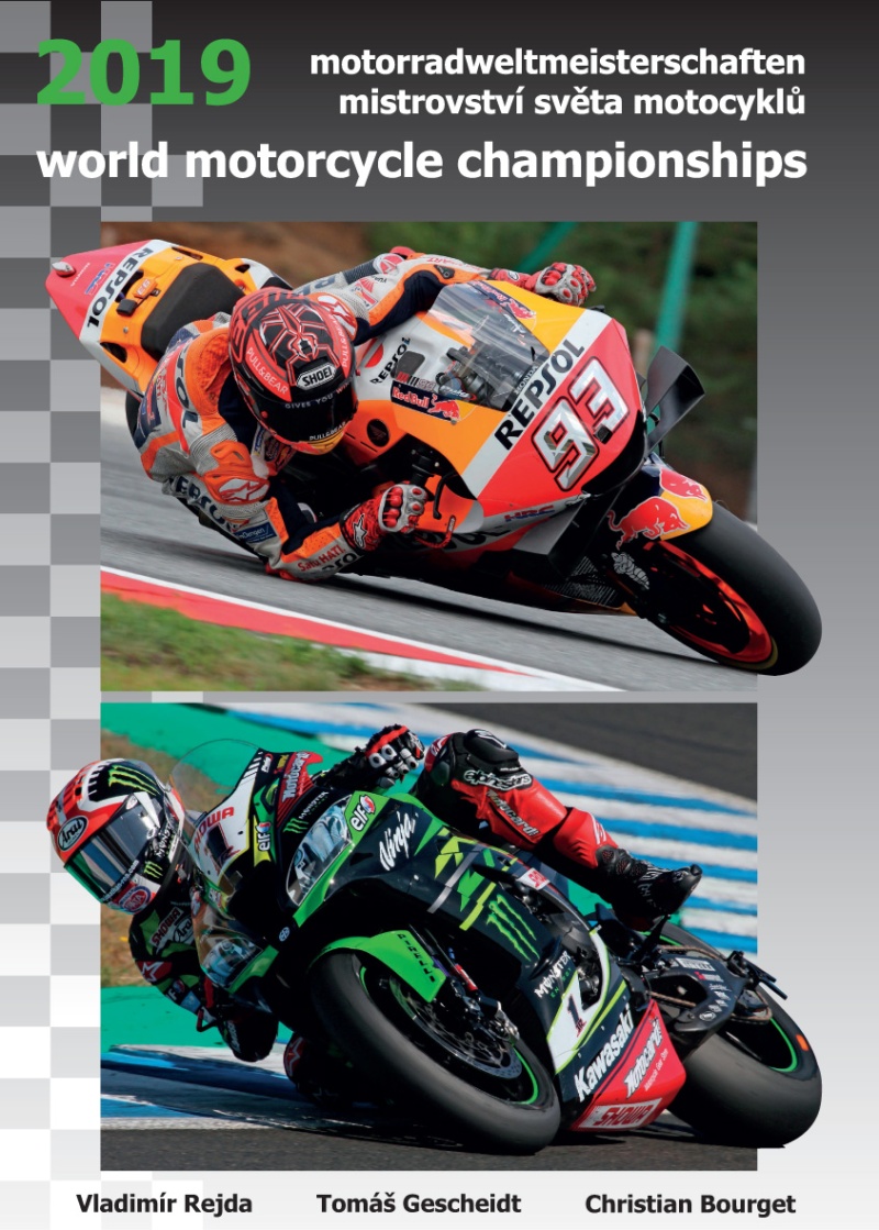 V předvánočním čase vychází 22. ročník knihy MISTROVSTVÍ SVĚTA MOTOCYKLŮ 2019. Kniha obsahuje GRAND PRIX a MS Superbike a dále pak MotoE, Red Bull Rookies Cup, MS Supersport 300, národní šampionáty Německa, České republiky, britské mistrovství SBK, Alpe Adria, španělský CEV, přírodní okruhy IRRC, MS Endurance a Adac Junior Cup. Texty v angličtině, němčině a češtině, kompletní přehled výsledků. Hlavní část knihy tvoří množství barevných fotografií. Kniha formátu 22,5 x 31,5 cm má 224 stran. Knihu si můžete objednat na e-mailu fotorejda@volny.cz či SMS na čísle 607 958 673. Cena publikace je 569 Kč + poštovné dle platných ceníků. U příležitosti vydání se uskuteční tradiční autogramiáda, a to v neděli 8.prosince 2019 v brněnském klubu Šelepka od 15 hodin za účasti našich předních současných i bývalých silničních motocyklových jezdců. Můžete vyhrát i zajímavé ceny! Více na www.fotorejda.com.