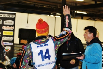 nešastnej‘. Kulakov byl o kousíček rychlejší od toho startu a potom jsem ho už nedohonil. Rybnik se odjel až napodruhý, ale o to líp pro mě, protože jsem byl v závodě. Finále bylo divoký. Lituju trošku Victora Palovaary, už před první jízdou měl dva pády. Jeden v tréninku, druhej‘, když jel na start Hubert Legowik a vzal ho s sebou. Dráha byla náročná, taky to po první jízdě odvolali, anulovali ji a šli dělat dráhu. O moc se nezlepšila, ale už to bylo sjízdný. Taky se podívej, kolik závodníků ten závod neodjelo. Bylo vidět, že to dělaj‘ pro Kacpera Worynu, ten si to podle mě asi nadiktoval, akorát to zezačátku přehnali. Ale Vencovi se to líbilo ještě o kousíček víc. Mně se to tolik nelíbilo, ale byli tam lidi, kterým se to nelíbilo ještě víc. Ale ta dráha mohla bejt‘ ještě lepší.“