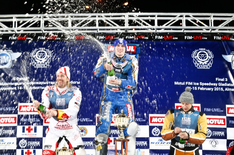 Slavný stadión Medeo umístěný v nadmořské výšce 1700 metrů a vzdálený bratru třicet kilometrů od největšího kazašského města Almaty neboli rusky Alma Aty hostil světový šampionát ledařů po dvaceti letech. Finalisté mistrovství světa tu při svém čtvrtečním příjezdu nalezli obrovské haldy sněhu a místní obyvatelé je informovali, že takovou bílou nadílku ještě letos nezažili. V pátém závodě dnes večer se radoval Dmitrij Koltakov. V rozjížďce s číslem dvanáct sice upadl, ve všech dalších případech však vítězil. A to včetně finálové jízdy, do jejíhož cíle za sebou přivedl Franze Zorna a oba bratry Chomiceviče. Igor Kononov mezi čtyřmi nejlepšími dnes chyběl, takže před zítřejším odpoledne jej od hrotu průběžné klasifikace dělí tři body. Bratři Klatovští se umístili těsně za první osmičkou.