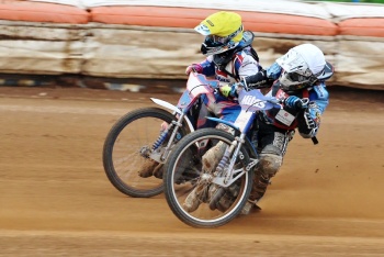 Nejšastnější chlapec světa se prohání na plochodrážním motocyklu po žarnovické dráze