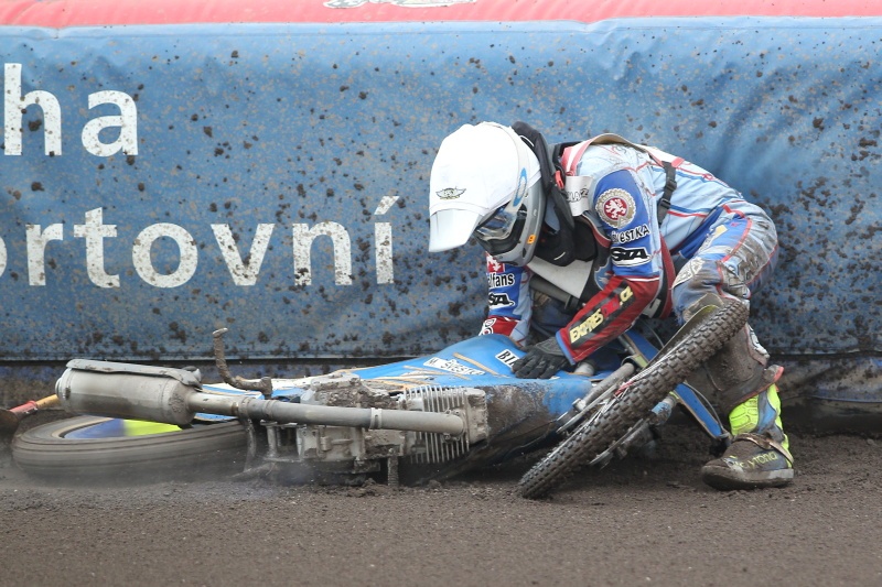 Někdy od třetího okruhu se totiž na jeho druhé místo sápal Hynek Štichauer. Ten všechno vsadil na vabank poslední zatáčky. Namířil si to do ní zleva,jenže spadl i se svým pražským protivníkem. Zatímco Pardubičan v mšenských službách rychle vstal, pražský junior skončil v sanitce a nakonec ve střešovické nemocnici s podezřením na zranění kolene.