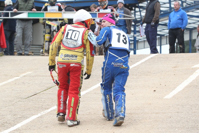 A právě ve třetím díle juniorky ve Slaném kraloval Pavel Navrátil, který neprohrál ani v jediné jízdě. Radka Smolíka zradil jednou motocykl. A vedle svého klubového kolegy prohrál také s Tomášem Hejtíkem, který v osmnácté jízdě před sebe pustil Josefa France. Tím pádem měli oba po dvaačtyřiceti bodech.