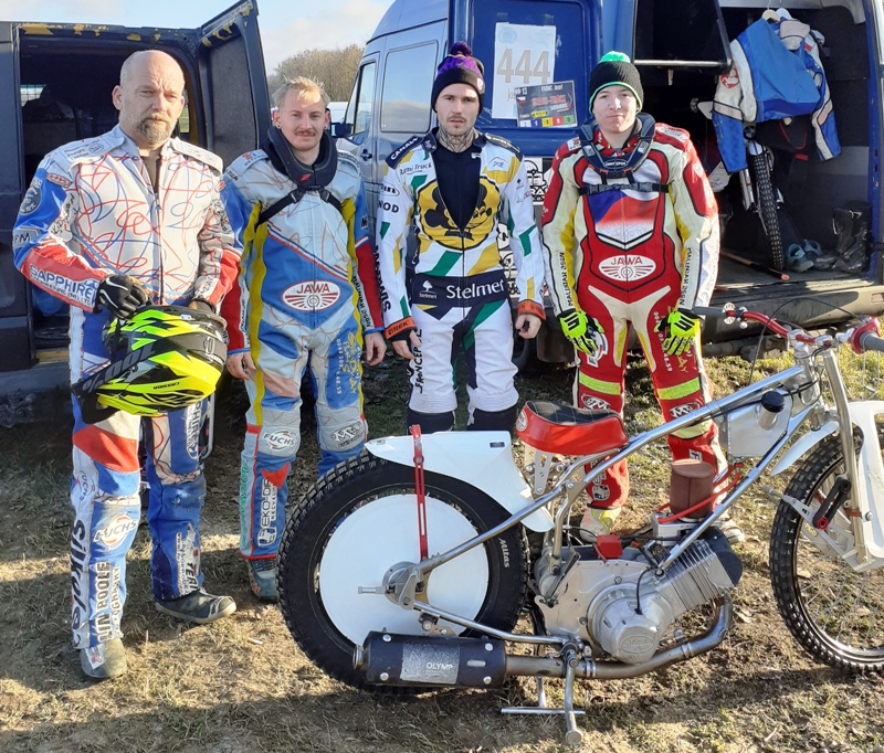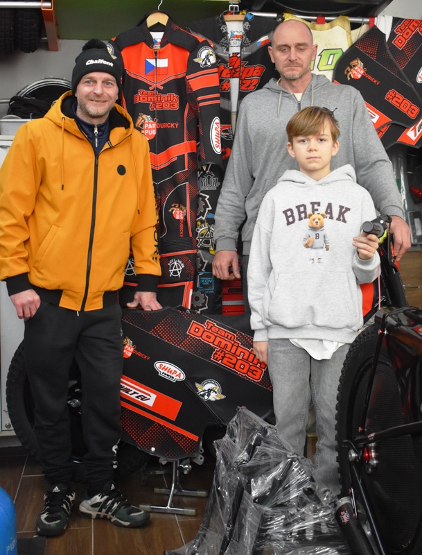 Dominik Suchánek se prezentoval novými dečkami a kombinézou v červenomodrých barvách. Příští sezónu ovšem nepojede pouze stopětadvacítky. V březnu by se v jeho dílně měl objevit stroj specifikace SGP4, s nímž jako jediný Čech zasáhne do mistrovství světa.