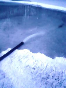 Vypůjčené čerpadlo zalévalo rybník. V osm večer vypadalo dílo zdárně, vytvářela se nová ledová vrstva. Nyní musí ovál promrznout, čemuž jdou na ruku i mrazy. Dnes je v Trhové Kamenici mínus osm.