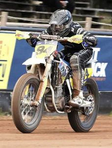 Pro flat track? „V něm jsem jel jen pár závodů,“ vyhrkne, aby se zamyslel a opravil. „Vlastně docela dost. Díky věku jsem už moh‘ jezdit ef té jedničky. Od sponzora jsem dostal čtyřistapadesátku Husqvarnu. Když jsem měl volno, zajezdil jsem si. V Čechách tolik závodů na plochý dráze není.“