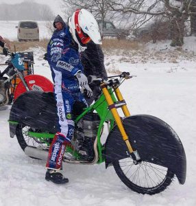 „Ne,“ zareaguje rázně na otázku o tréninku o tomto víkendu. „Ale minulou sobotu jsme u Andreje Diviše v Chocenicích byli. Stihnul jsem to. Sice napadalo dost sněhu, měl hodně práci, ale odhrabal trať. A půjčil mi motorku, za což mu děkuju.“