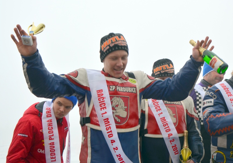 Veslařský kanál v Račicích nabídl druhému dílu mistrovství republiky ledařských družstev úžasné kulisy. Závod komplikovala houstnoucí mlha a voda, která se dostávala na povrch ve stále větším objemu. Svým způsobem na ni doplatil Lukáš Volejník, jemuž se dostala do karburátoru zrovna ve chvíli, kdy potřeboval zmizet z dohledu Charly Ebnera. Díky tomu chyběl osečenskému páru jediný bod na účast v rozjezdu o první místo. V něm už byly podmínky extrémní. Gejzíry vody lítaly vysoko. Mlha byla tak hustá, že z depa nešlo přehlédnout ovál diagonálním úhlem pohledu. Markus Jell a LUkáš Hutla připomínali duchy, kteří jen pár metrů před okem pozorovatele se proměnili ze stupnice šedivých odstínů v barevné osoby na barevných motocyklech. Na poslední chvíli se prosadil přeloučský terminátor a zvýšil počet vítězných rozjížděk v kuse na třiadvacet. Více zjistíte v původní reportáži magazínu speedwayA-Z.
