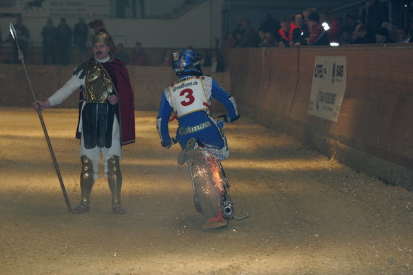 V sobotu večer se konal již 4. ročník Night of speedway show. Tento podnik, který si v plochodrážním kalendáři našel své místo v předvánočním čase, je neskutečná podívaná, jenž zcela naplňuje svůj název a účel. Moderní hala určená pro koně na parkurové skákání umožňuje vytvořit ovál dlouhý 120 metrů s povrchem směsi pilin s hlínou. Divácky velice atraktivní zážitky jsou o to lepší, že se mohou se svými oblíbenci na dráze přímo pozdravit ze svých sedadel. Letos po dvouleté odmlce měla zde zastoupení i naše plochá dráha a to v podobě juniora Luboše Tomíčka, který je vůbec premiérovým vítězem tohoto klání z roku 2003.