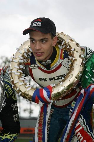 Poláků a víš, jak Poláci jedou doma. Po vítězství jsem cejtil velkou šanci na finále. Všechno bylo připravený. V první jízdě mi nevyšel start. Nerad čekám a tak jsem ve druhý zatáčce chtěl předjet hned dva. Nepodařilo se to. Spadnul jsem, ale měl štěstí, že přede mnou upad´ ještě Dán. Jenže nejlepší motorku mi museli táhnout do depa čtyři lidi. Celý závody jsem dojížděl s bolestmi hlavy. A nakonec zjistil, že tři body mi chyběly na vicemistra. Teď mě v devatenáctkách čeká poslední rok. Troufám si říct, že chci jet o titul. Ale nejdřív musíš postoupit a teprve pak uvažovat, co chceš získat.“
