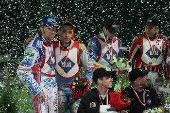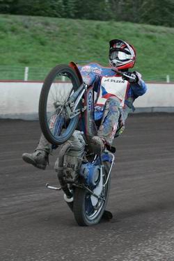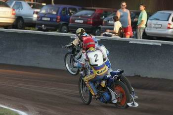 chytnul jízdu s nima kromě jedný juniorský. Ale jak se dostaneš do polský ligy, jsi v podvědomí promotérů jinejch týmů. A když máš výsledky, v zimě přijdou jejich nabídky. Jezdit v Polsku je dobrá příprava do budoucna. Poznáš, jak dělat motorky, jaký věci do toho dát. Pak to musíš doladit se svým ladičem. Měl jsem výhodu, že Olda Řezníček jezdil se mnou. A skloubil to tak, že v extralize se dalo stačit těm nejlepším. To se povedlo v posledním závodě ve Wroclawi. Dvě tři kola jsem jezdil před Andersenem. To pak na tebe psychika působí úplně jinak. Teď bych se chtěl svýzt víckrát. Ve Wroclawi vědí, co ode mě očekávat. Věřím, že dopadne víc závodů než loni. Měl jsem to štěstí přijít do týmu, co udělal polskýho mistra. Nebo že by to bylo tím, že jsem tam přišel já, ostatní se báli konkurence a vzali za plyn (smích)?! Oslavy tituly byl nezapomenutelnej zážitek. Ve Wroclawi bylo osmnáct tisíc diváků. Po závodech jsme byli půl hodiny zavřený v depu, protože diváci naskákali na dráhu a ochranka dělala pořádek. Lidi tam jsou super a maj‘ rádi plochou dráhu. Pak se ti doma jezdí dobře. Horší je, když venku uděláš něco domácímu. To se pak ani nemůžeš ukázat na dráze.“