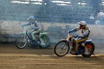 Pavel Fuksa: „To bylo jak zlej‘ sen! Šel jsem do závodu s tím, že bych je moh‘ vyhrát. Po tréninku jsem si věřil. Sice jsem si to málem hodil za ucho, povolil jsem páčku a motorka vystřelila. Ale na závod byla motorka super. Rozhodla však první jízda. Odstartoval jsem. Na mě to byl těžkej převod. Motorka tahala, až jsem udělal chybu. Přetočil jsem se jak malej kluk. A totálně se psychicky sesypal. Pak jsem jel, ale dělal zbytečný chyby. Dvě jízdy jsem vyhrál s náskokem a v další dělal dva body. V poslední jízdě přišel pád, kterej se občas stává. Nasadil jsem na velkej venek, dostal cejchu na nohu a přetočil se. Ten den jsem z pěti startů čtyři vyhrál. Kdybych jel jako v Pardubicích normálně, věřím, že s tímhle motorem bych na bedně stál. Letos bude lepší, že devatenáctky nebudou doma. V Pardubicích mi nedělaj‘ dobře ty lidi, co choděj‘ a kibicujou. Dráha je velká a musíš na to mít motor. Radši mám Prahu,