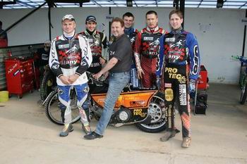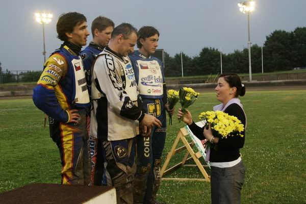 jsem se osobně setkal s klukama, co jim fandím přes televizní obrazovky a osobním sledováním motoristickýho sportu. Pocit zadostiučinění? Snad ani ne. Vždycky jsem měl k titulům kousek. V jednotlivcích byly jen bedny. Extraligu vyjeli stejně Poláci. A Mirda. Rozhod‘ to, že vždycky udělal pět bodů. To bylo to vítězství. Kdyby je neudělal, nebylo by vítězství. Rozhoduje vždy poslední bod. Tohle byla posvátná věta pana Plzáka, když jsem ještě jezdil v Březolupech. Letos extraligu jezdit nebudu, protože už nemám kloudnou techniku. To všichni věděj‘, ani se mi nikdo neozval. Tak si zajezdím aspoň při tréninku v Liberci. A se Sašou Kopeckým si občas vyzkoušíme něco při tréninku v Pardubicích. Jsem závodník v Čechách s motorkou. A nikdo mě nechce. Tak a to jezděj‘ Poláci. Asi nejsem pro nikoho zajímavej. Deset bodů dělat nebudu. To bez tréninků a vyježděnosti nejde. Ale určitě bych si tam nějakej bodíček vydřel. Asi by bylo potřeba udělat tam jen jednoho hosta. Jinak bude po ploché dráze. Jen když evropský hvězdy nemůžou, jsme jim dobrý my.“