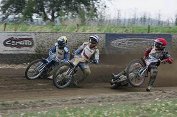 vyšlo, že to spoustě lidí uškodí. Po zániku první ligy se sveze o jednoho závodníka v každým klubu míň. V extralize může juniora nahradit jen junior a to je taky scestnej tah. A celkově s nasazováním Čechů další rána pod pás. Aspoň z mýho úhlu pohledu to tak vidím. Když nebudu v nějaký oslnivý formě, svezu se ve dvou závodech za rok. Nenasaděj‘ mě do extraligy ani do tříčlennejch družstev, nepozvou mě do Miskolce a tak pojedu jen dvě semifinále mistrovství republiky. A možná dva pouáky. Opatření maj‘ spíš opačnej efekt než pomoc seniorům. Už se o tom zmiňoval Vlado Višváder, aby místo osmi závodů udělali šestnáct. Dva v jeden den. To by nezvedlo náklady. Ale to ani já nezměním. Každej z jezdců o tom jen mluví, ale na schůzi nikdo hlasovat nejde. Jsme hodně chytrý, když něco chceme změnit, ale jít to změnit nikdo z nás nedokáže. A tak se asi nemáme co divit. Když máš pocit, že ti spousta funkcionářů hází klacky pod nohy, táhneš závodění z vlastních peněz, málem, aby ses doprošoval, jestli můžeš jezdit, a setkáváš se ještě s odporem, není to moc efektivní. Třeba však přijde doba, kdy si funkcionáři uvědomí, že oni tady jsou kvůli nám, a ne naopak. Když tady nebudeme my závodníci, nebude ani žádnej Svaz plochý dráhy. Proto by se tihle lidi měli snažit, aby to mělo úroveň. To je v návaznosti na počet závodů. Junioři jich teď maj‘ padesát za sezonu, ale stylem těhle změn jich budou mít sedmdesát. Tím se jim to znechutí a my senioři se budeme akorát dívat! Loni jsem si na počet závodů nestěžoval. Ale třeba přijde špatná sezona. A dělat něco za každou cenu? Když vidím, co do toho dávám peněz, mám se uspokojit pěti závody za rok? To si můžu najít jinej koníček. Bude mě to stát dvacetinu. A nebude to tak, že máš auto, motorky, všechno vybavení, ale nemáš závody! Kvůli tomu si musím vzít příklad z Vlada v pohledu na celou plochou dráhu. Nehonit se za něčím za každou cenu, ale spíš se bavit, bavit a zase se bavit. Musíš mít příležitost sem tam si zablbnout. Ale jak jsem řek‘, myslím, že v extralize pod deset nepůjdu. Takže to bude dobrá zábava (smích).“