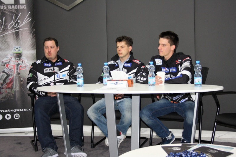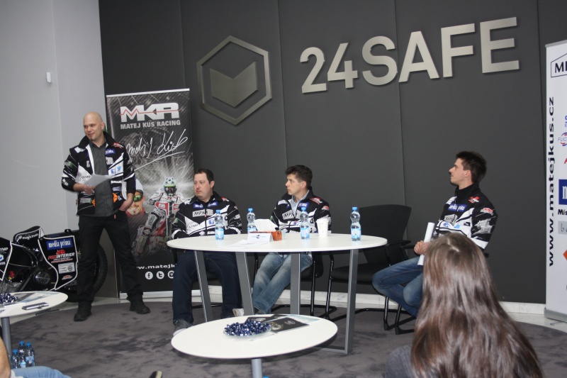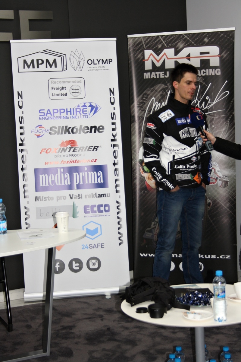 „Ještě nikdy jsem individuálně tiskovku neudělal, byl jsem jen součástí tiskovek týmů,“ ujal se slova pražský závodník. V nové úloze se však záhy cítil jako ryba ve vodě, stejně jako za řidítky plochodrážních motocyklů, z nichž dva se krásně vyjímaly v hale provozovatele bezpečnostních schránek.