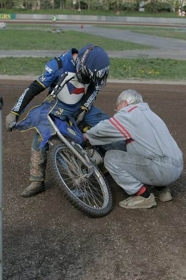 „Jel jsem se tedy jen podívat,“ pokračuje ve svém líčení. „Ale Fanda Liebezeit mi nabídl, že bychom se mohli střídat o motorku. Bylo to od něj pěkné. Moc se mi do toho nechtělo, ale nakonec jsem to vzal. Na té motorce se mi jelo moc dobře a i s dráhou jsem byl spokojen. Byla to moje druhá bedna. Byl jsem druhý už v roce 2005 v Liberci, kdy se tam jel první závod. V rozjížďce Pivovaru Konrád jsme jeli jen dva kvůli sraženým jezdcům.“