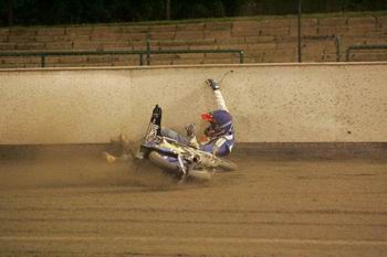 Hned na začátku svého druhého comebacku Matyáš Hlaváček rychle podal pádný důkaz o velikosti svého jezdeckého potenciálu. V první rozjížďce mistrovství republiky dvojic za sebou nechal svého paráka Vladimíra Višvádera, ale především konkurenční pár Sjoerd Rozenberg – Jaromír Otruba. Jenže vzápětí v duelu s Adrianem Rymelem skončil jeho motocykl na mantinelu druhé zatáčky. Diváci se naštěstí rozutekli, avšak pokroucenému kovovému oři nebylo na místě pomoci.