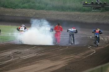Matej Ferjan a Grzegorz Zengota vyautovali v první zatáčce Adama Vandírka. Ale jejich klubům to v konečném důsledku stejně nic nepřineslo. Pardubáci se na stupně vítězů nevešli, Plzeňané na nich museli vzhlížet ke Mšenu.