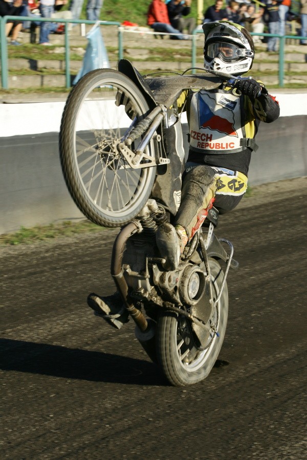 zastavili to a při opakování jsem byl šestej. Tyhle maličkosti stavěj‘ mozaiku výsledku. Přál bych si víc štěstí. Famózně jsem si zazávodil. Dal jsem do toho všechno a kolikrát ani nevěděl, jestli to ustanu. I když máš motorku pod kontrolou, byly situace, kdy jsem myslel, že to neustojím. I mechanik Káča řek‘ ‚Ty brďo, tohle bylo hustý!‘. Podmínky byly bojový a já si to vydřel. Věděl jsem, že nemám co ztratit. Chtěl jsem zase jít do finále, to by byla satisfakce za celou sezónu. Chyběla mi jedna příčka a zavřel bych pusu všem, co říkali, že to byla jen náhoda, že jsem se do seriálu dostal. Mrzí mě, že to bylo jen o jedno místo. Ale je to tak a teď už s tím nic neudělám. Jeden poznatek k letošní nominaci, když mi jednoho večera přišla SMSka, kdo dostal divokou kartu, zamrzelo mě, že funkcionáři tvrděj‘ něco, ale skutky jsou jiný. Dostal to asi ten, kdo si to zasloužil. Občas slýchávám, že mládí vpřed, tak asi ještě nejsem mladej‘ (smích)!“