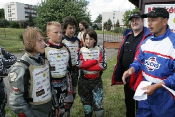 Zdeněk Schneiderwind: „Byl bych rád, kdyby to fungovalo takhle. A možná líp. Zásadní novinkou je program, kterej‘ vzniká. Sponzorsky by to mělo bejt zajištěný. Vrbové by měli bejt‘ hvězdy, k nim by měli dorůst další. Škoda, že to Eda nedojel. Kluci se na ty souboje s ním těšili. Chtěl bych, aby se do toho zapojilo víc závodníků. Než začneš běhat, musíš se naučit chodit. Mistrovství republiky na malý dráze je takovej‘ stupínek navíc. Když kluk udělá titul, je to malej‘ krok, ale je. Už loni jsme tam dali startovací zařízení. V Míšni jsem včera mluvil s Fandou Kalinou, kterej‘ mi loni úžasně pomoh‘. Je dobře, že to nezávisí jen na mně. Oficiálního rozhodčího nemáme, ten stojí peníze, ale Fanda to dělá z lásky ke sportu. Chci, aby byl objektivní systém. A to není, když se udělují mistrovský body. Pokud je rozpis na šestnáct závodníků, je to lepší, ale když nejedou všichni s každým, je to sporný. Tady je to, že co si vybojujou, to maj‘. Na rozpise se moh‘ podílet každej‘, ale nikdo se neozval s připomínkou. Novinkou však je, abych měl den předem uzávěrku přihlášek. Loni jsem ještě pět minut po čtvrtý nevěděl, jestli budu mít deset závodníků nebo čtrnáct. Myslím si, že bude i mezinárodní účast. Mluvil jsem s Rony Weisem. Vím, že v úterý v šestnáct je to obrovskej‘ handicap, ale je to otevřený všem. Bylo by to zpestření a o prázdninách by tam někdo moh‘ přijet.“