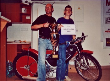 „Chtěl bych poděkovat všem sponzorům, co pomáhaj‘ nejen mně, ale vrhli se i na Markéta Cup. MPM Trading a Michalu Stárkovi. Paní Vikové ze Semtexu. JRM Divišov, panu Beránkovi z PRO-TEC a společnosti Fuchs Oil. Jsem rád, že jsem se domluvil i s panem Greplem. Nemalou měrou se podílej‘ na mých úspěších i na Markéta Cupu. Těmhle lidem, který neřeknou, že něco je špatný, ale snaží se něco udělat. Přijdou a řeknou ‚uděláme‘ a snažej‘ se dle svých možností pomoct plochý dráze. Důvody, proč to nejde, můžeme řešit v hospodě. Tam se vyřeší všechno, proto jsou ty hospody tak plný.“