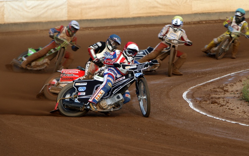 Rozjížďku s číslem pět zkomplikovala porucha startovacího zařízení, protože páska zůstala na pravé straně viset. Po repete demonstroval Zdeněk Holub, že zelený povlak může být dnes absolutně dokonalé synonymum pro perfektní start. Jaroslav Petrák se před něho cpal po vnější straně úvodní zatáčky, nicméně byl odražen.