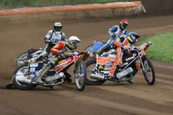 Pardubická vítězná mašinérie se měla zastavit až v rozjížďce s číslem čtyři. Avšak první závodní nasazení Václava Milíka po jeho dubnovém zranění nevyšlo naprázdno. Michael Hádek se v nájezdu do druhé zatáčky pokusil urvat zpátky druhou příčku, kterou mu uzmul Martin Málek. Jenže předvedl freestylový prvek, jenž nemohl skončit jinak než pádem. „Byla tam hranka, nemělo se to v prachu o co opřít,“ vysvětloval. „A už jsem lítal vzduchem.“