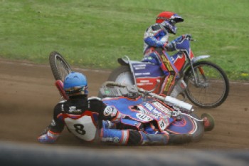 A od startu odjížděl až jako poslední. Ve druhé zatáčce podjel Michaela Hádka, aby v následujícím oblouku zkusil útok vnějškem na Josefa France jedoucího těsně za prvním Robertem Kosciechou. Jenže… „Natáhlo mě to, lek‘ jsem se, vzal za řidítka a upad‘,“ líčil události jejich samotný aktér. „Udělal jsem nájezd jako v Eastbourne. Koplo mě to. Tohle se nesmí stávat!“