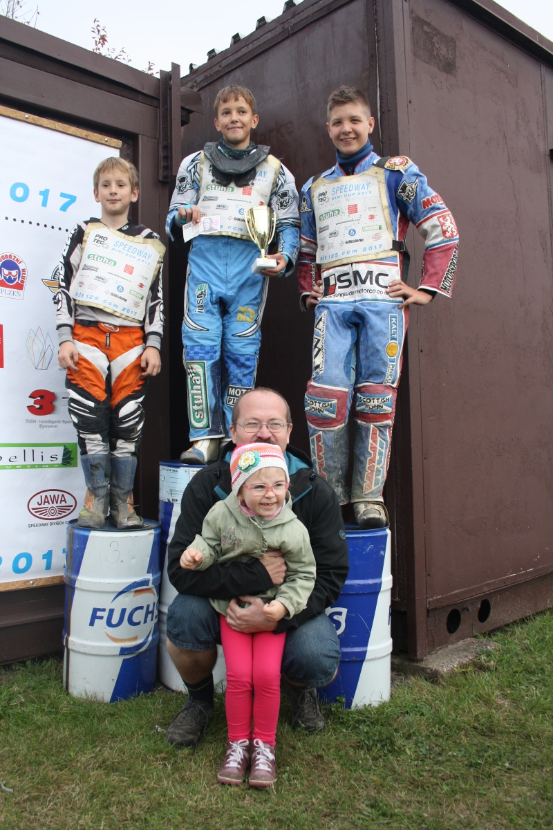 Ať tak či onak, na vítěze Ceny vydavatele speedwayA-Z čeká nejen pohár, ale především tisícikoruna v hotovosti. Důležitým upozorněním je, že ceny nejsou v žádném případě putovní. Novinkou je však pohárek od mojí dcery Toničky. Jezdí s námi na závody prakticky již od narození. Pětistovky ji nechávají prozatím v klidu, ale zbožňuje stopětadvacítky. I když kdo ví, možná změní názor, když ji Růžovásek, jak si sama ve svém pětiletém mozku překřtila Patrika Mikela, svezl při sobotní pardubické rozlučce.