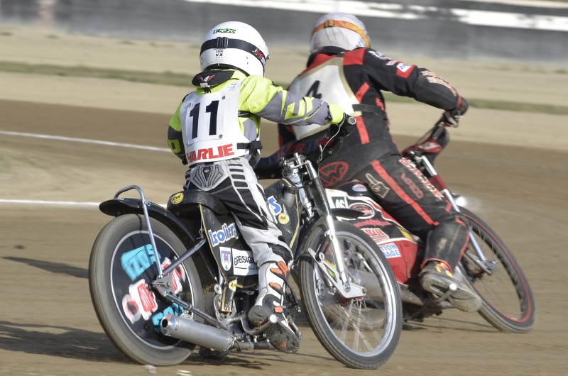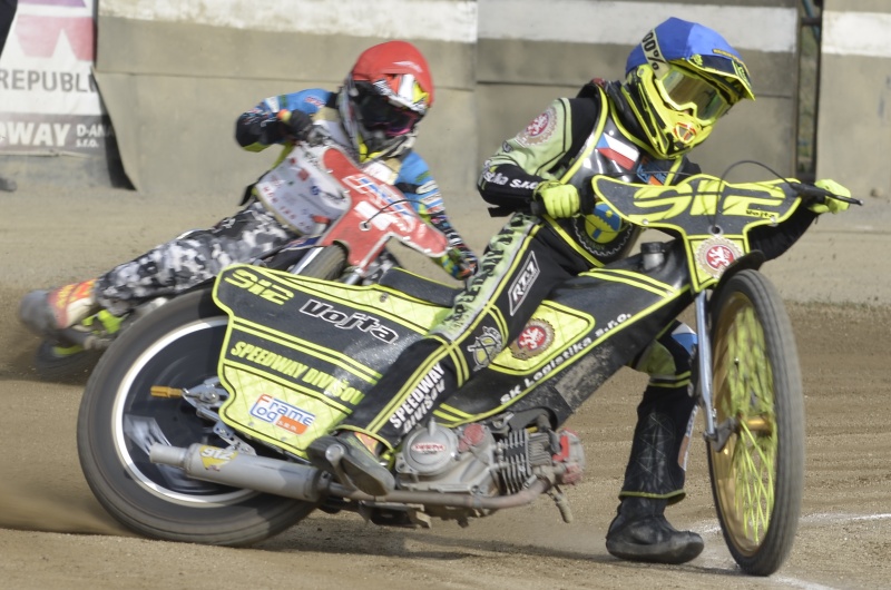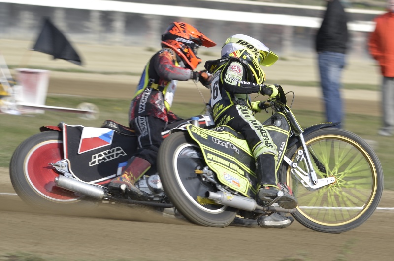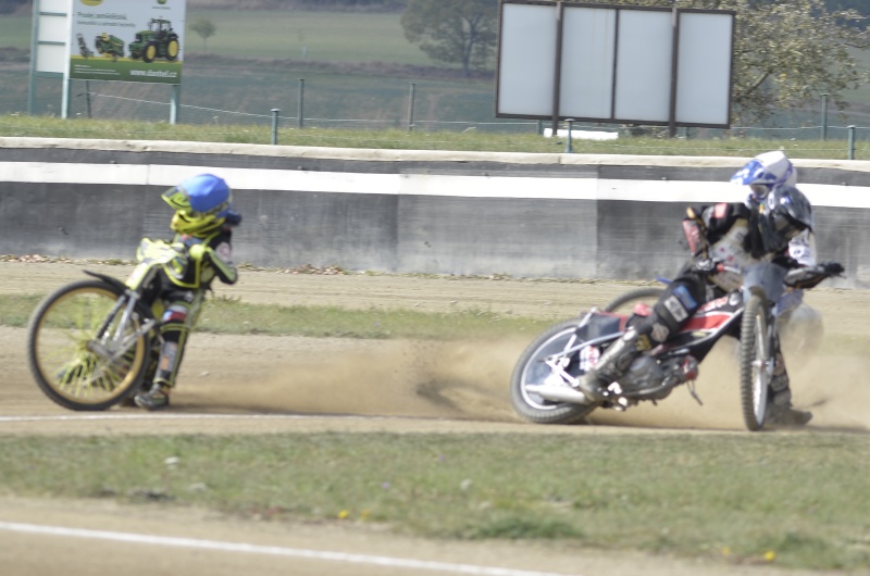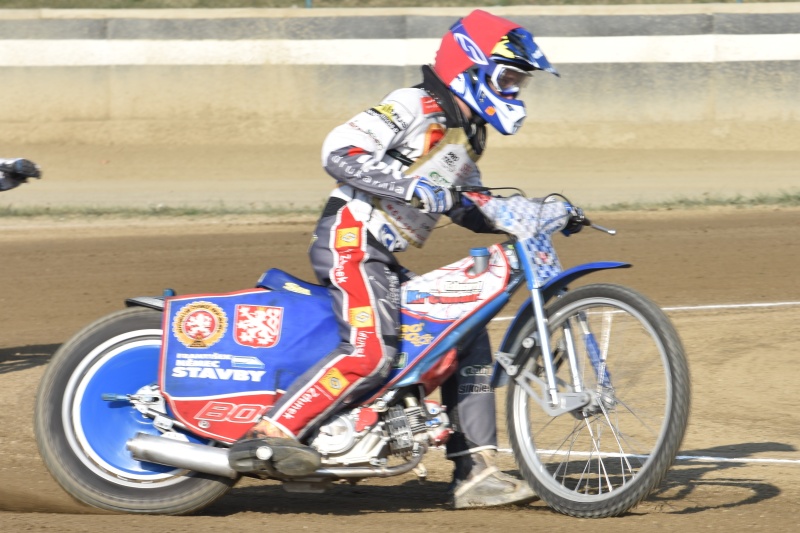 Slánský blonďák se hnal vnějškem první zatáčky, aby dostihnul Jana Jeníčka. Ve výjezdu se sice dostal moc ven, ale rozhodně se ještě nehodlal vzdát. Avšak na začátku druhého kola právě v úvodním výjezdu nechtěně opustil dráhu.