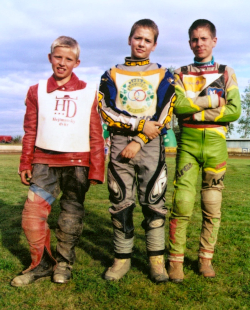 Absolutní plochodrážní začátky Romana Čejky, který na snímku stojí vlevo vedle Pavla Pučka a Martina Wasyliwa