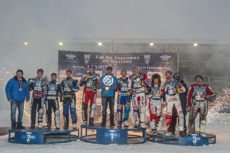 Rusové a Švédové si v Ice Speedway of Nations v Togliatti zásadě zopakovali sobotu. Domácí však neztratili ani jednu rozjížďku a navíc suverénně porazili ve finálové jízdě i zástupce země tří korunek a stali se opět světovými šampióny. Dnes třetí Němci ztratili v konečném součtu jeden bodík na třetí Rakušany. A podobně se vedlo i českému nároďáku. Trojlístek Andrej Diviš, Jan Klauz a Lukáš Volejník pod manažerskou taktovkou Radka Hutly byl sice pátý, ale jen díky pomocným kritériím při bodové rovnosti s Finskem a Kazachstánem a tak se domů vrací jako poslední celek výsledkové listiny.