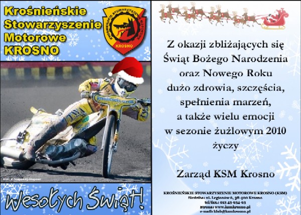 Servis PF 2010 od KSM Krosno 22.12.2009 Antonín Škach Weso³ych Œwi¹t oraz Szczêœliwego Nowego Roku ¿yczy Kroœnieñskie Stowarzyszenie Motorowe Krosno.