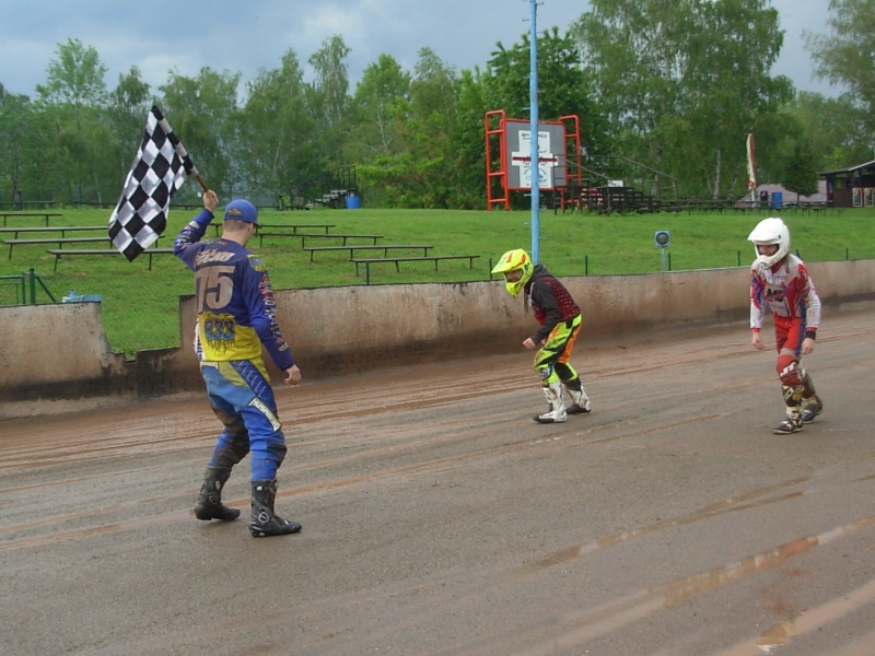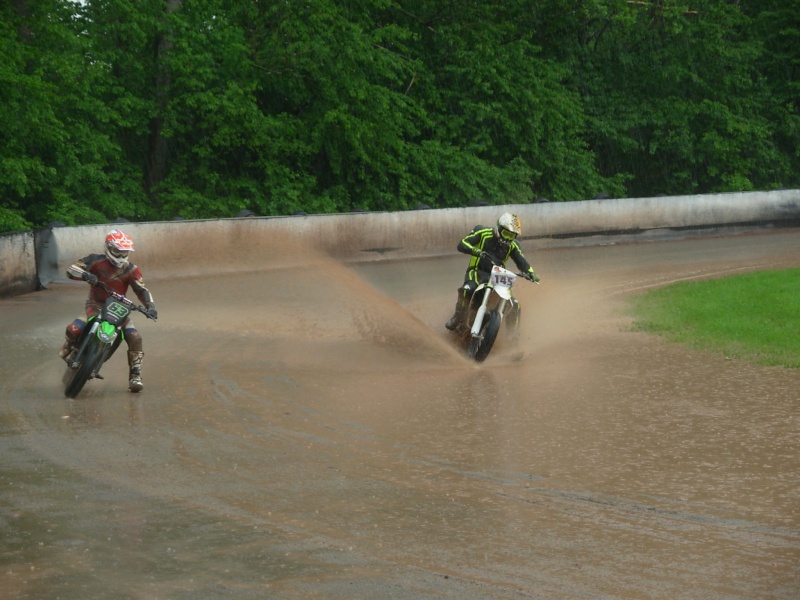 Po ustání deště si kluci nenechali ujít příležitost, svézt se na vlastní riziko na takto zalité dráze. To byla neobvyklá podívaná pro tuto disciplínu, jak víme, flat track vůbec nemá rád mokré dráhy. Ale v Chabařovicích jakoby všichni ztratili pud sebezáchovy a ve velkých rychlostech projížděli jezerem“ které se na dráze vytvořilo. Nutno podotknout, že nebyl naštěstí žádný pád, a kluci měli alespoň pěkně umyté motorky.