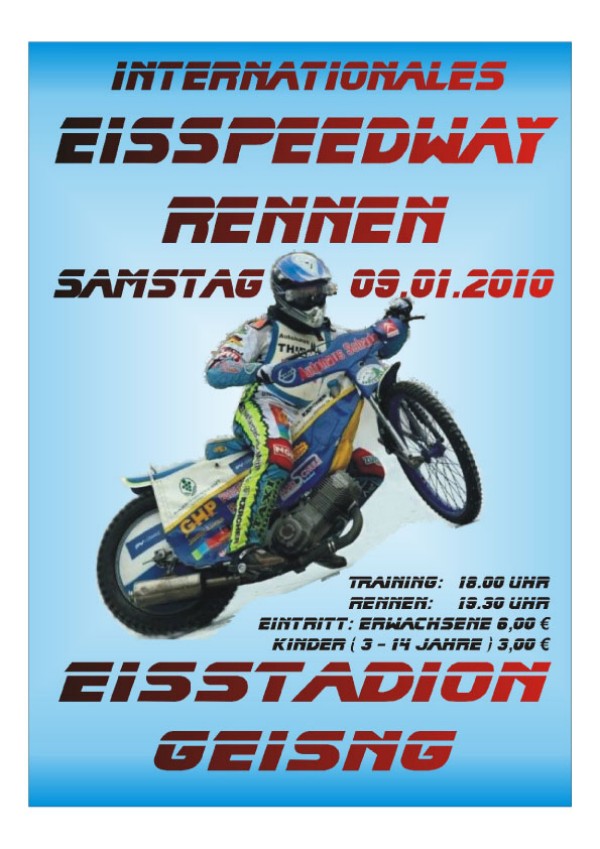 Německý Geisink u Altenbergu u českých hranic poblíž Teplic bude v sobotu 9. ledna večer dějištěm mezinárodního závodu plochodrážních motocyklů se samořeznými šroubky v pneumatikách na ledě. Akce začíná v 19:30 v tamní ledové hale. Vedle stopětadvacítek a automobilů bude hlavním bodem programu mezinárodní klání v klasické kubatuře 500 ccm. Vedle domácích z pořádajícího klubu v Míšni Ronnyho Weise, Marcela Kalmse a Martina Ernsta dostali pozvánku i Roberto Haupt, česky hovořící Holanďan Anne Spaan známý z české juniorky a také Roman Čejka. Ten se magazínu speedwayA-Z svěřil, že se s ledovou disciplínou setkává poprvé.