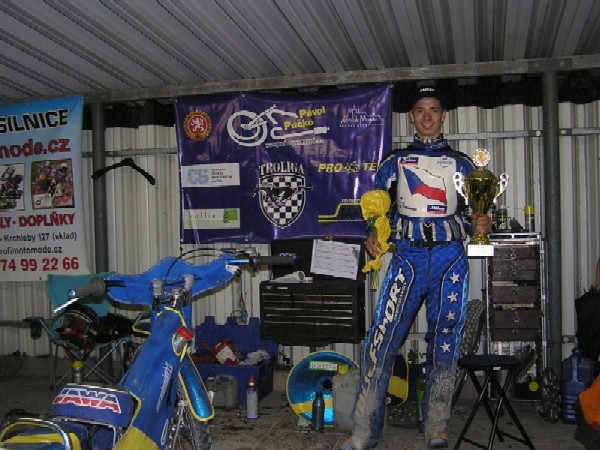 Pavol Pučko: „Toho si cením hodně. Mrzí mě Praha, ale ta jedna jízda chyběla každýmu. Já ji měl hodně lehkou, co se dá dělat?! Škoda Slanýho, šel jsem na držku pomocí Vency Milíka. Pohmoždil jsem si záda a bylo to dlouho citlivý. Divišov byl dobrej, tam se mi líbilo. Mrzí mě, že nemám skalp Martina Vaculíka. Jenom tři kola (smích). Nějak to nevyšlo s jeho ohlídáním. Čekal jsem, že to udělá, ale nebyl schopnej mu v tom zabránit. Spíš jsem doufal, že to tam nepošle. Ale poslal. Škoda, že v Divišově nemaj‘ o půl kola kratší dráhu (smích). Ale aspoň tři kola jsem mu konkuroval. Pak jsem byl leader klasifikace, ale v Březolupech (tříčlenná družstva – pozn. redakce) jsem se vyhejbal Holubínovi a Martinu Málkovi. Upad‘