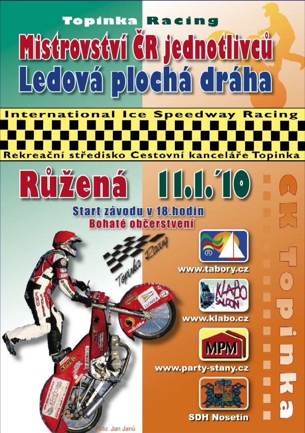 Pondělní závod mistrovství republiky na ledové dráze v Růžené vejde do historie jako první ledový mítink u nás, konaný pod umělým osvětlením. Z toho důvodu začne až úderem osmnácté hodiny. Vedle osmi českých borců, tj. Antonín Klatovský, Jan Klatovský, Jan Pecina, Lukáš Volejník, Andrej Diviš, Martin Běhal, Radek Hutla a Petr Klauz, by se ve startovní listině měli objevit borci vracející se ze Saalfeldenu a Flimsu. Potvrzen byl český debut ve Švédsku žijícího Angličana Marka Uzzella. Osloven byl rovněž Antti Aakko, jenž se našemu publiku prozatím představil pouze před pěti lety při exhibici v Českém Krumlově.