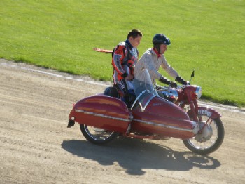 veteráni. Krzysztof Nowacki neváhal, seběhl z depa a naskočil do sajdkáry, aby pobavil netrpělivé publikum. Okolnosti nasvědčují, že polský borec závodí pro radost všem.