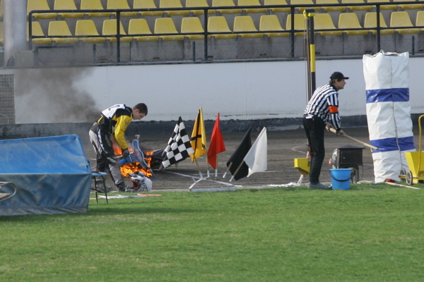 Do třinácté jízdy, poslední základního rozpisu,nepřijel ze Šmoulů nikdo. Zdeněk Vrba rezignoval a Jiří Brummer se z tribunky u depa rozběhl ke svému motocyklu příliš pozdě, než aby stihnul dvouminutový limit. Ani květinářům však nebyl dopřán plný bodový zásek. Pavel Ondrašík musel ve druhém kole zastavit s prázdnou zadní pneumatikou.
