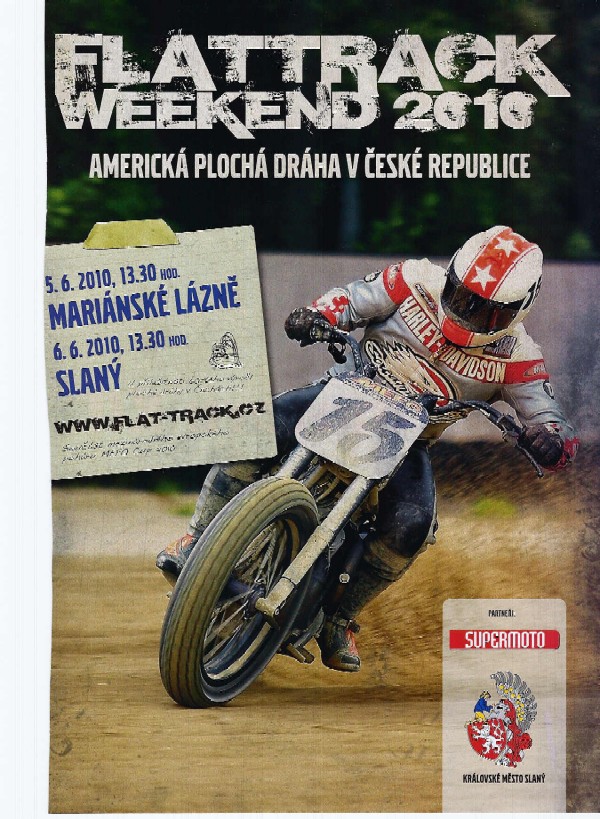 Flattrack, motocyklové zápolení na oválech známé z druhé strany Atlantiku, se představilo také českým divákům. Silné stroje, většinou sedmsetpadesátky Harley Davidson, už kroužily v Mariánských Lázních a loni obstaraly předkrm Tomíčkova memoriálu. Mezinárodní International Flattrack Cup 2010 má celkem devět podniků. A dva z nich se uskuteční u nás, v sobotu 5. června v Mariánských Lázních a druhý den ve Slaném. Druhého zápolení se zúčastní také Pavol Pučko, jenž své zkušenosti z motokrosu zúročil už při flattracku v září na Markétě.