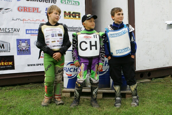 Zatímco se narychlo předělával rozpis, Filip Šifalda, František Klír a Patrik Zikán absolvovali svou první exhibiční jízdu. Nebylo jim ještě deset let, takže hlavní závod pro ně zůstal zatím uzavřený. Hned rozjížďka s číslem jedna přinesla překvapení, když se Patrik Mikel usadil před Davidem Štěrovským.