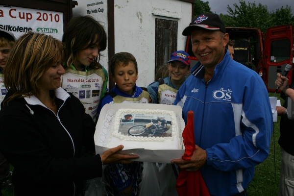 Plné igelitové tašky, které dostávají všichni startující, jsou už při Markéta Cupu tradicí. Nyní k nim přibyli památeční vlaječky, které Radek Smetana nechal vyrobit u příležitosti svého závodu. Hlavní sponzor společně se svou manželkou připravili překvapení Zdeňku Schneiderwindovi. Jako poděkování za dlouhodobé úsilí při výchově nových adeptů plochodrážního sportu mu nechali upéct dort s fotografií.
