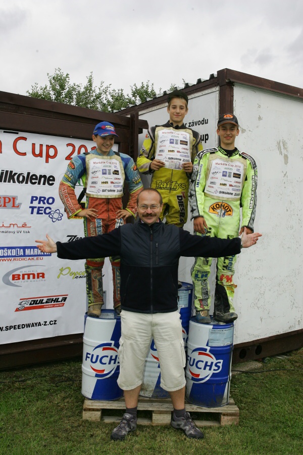 Čtvrté kolo Markéta Cupu pod sponzorskou patronací společnosti SMESTAV se včera uskutečnilo čtrnáct dnů po svém plánovaném termínu, který se utopil v záplavách dešové vody. V mnoha ohledech se stal jedním ze zlatých hřebů sezóny na malé dráze. Už jen kvůli počtu startujících, kterých do Prahy přijelo třináct. Ale také kvůli záplavě cen, které si závodníci odvezli domů. Nejvíc jich posbíral Michal Škurla. Vedle dvanácti bodů do celkové klasifikace, jimiž upevnil své celkové vedení, inkasoval také tisícikorunovou prémii za triumf v nadstavbové Ceně vydavatele magazínu speedwayA-Z.