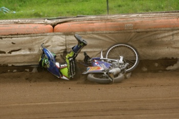 náskok díky dalšímu 5:1. Piotr Dym a Michael Hádek letěli dopředu současně s páskou, zatímco Pavel Fuksa a Stanislav Pouznar očividně zaspali. Starší z mšenské juniorské dvojice ke všemu ještě v předposlední zatáčce upadl.