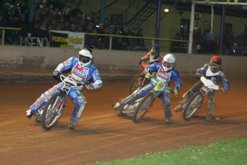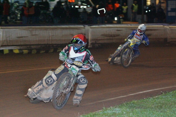 Poslední rozjížďka celé letošní extraligy přinesla demonstraci domácích barev. Grzegorz Walasek a Greg Hancock za sebou nechali Matěje Kůse a Richarda Wolffa prakticky zároveň s vylétnutím pásky.
