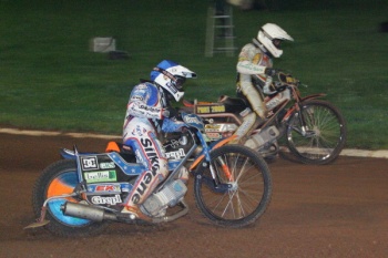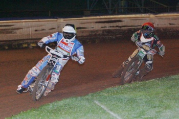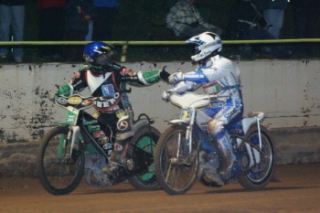 „Dráha je těžká,“ připustila pardubická hvězdná posila mšenského týmu. „Pereme se s tím a chce to přemejšlet‘. Ale určitě je těžká.“ Mezitím při repete třetí jízdy se Greg Hancock rozhodl udávat tempo. A stejně jako ve finále sobotní italské velké ceny ukázal výfuk Nicki Pedersenovi.